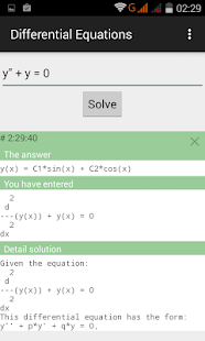 Ecuaciones diferenciales calculadora online. Con una solución detallada paso a paso. Get the free Calculadora de ecuaciones diferenciales widget for your website blog Wordpress Blogger or iGoogle. Al final de la página verás la solución de la ecuación.