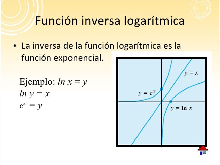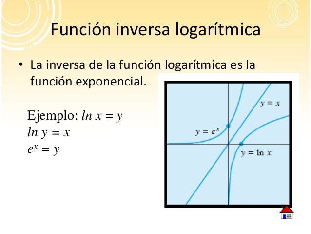 A função logaritmo natural tem um limite em 0 que é igual a -. Então a função inversa da função logaritmo natural é a função exponencial. Propiedades inversas de funciones logarítmicas Objetivo Para entender las propiedades inversa de una función logarítmica.